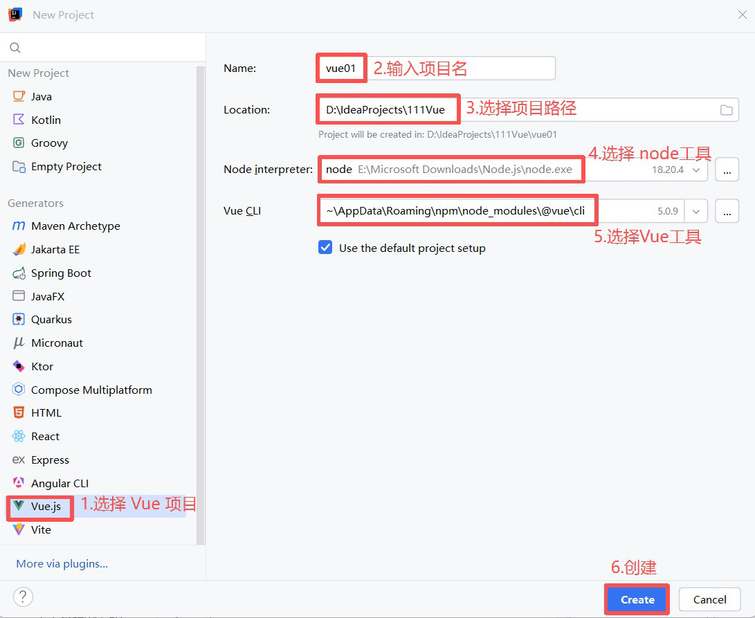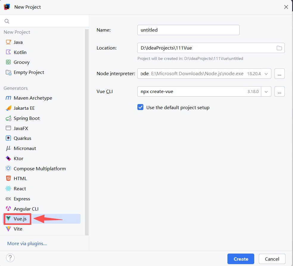 依次点击菜单 File -> New -> Project -> Vue.js (↑ 上面图片中的页面)