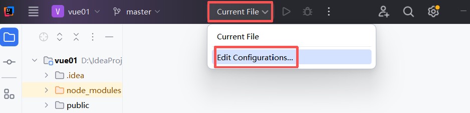 1. 点击顶部的 Current File ,点击 Edit Configurations...