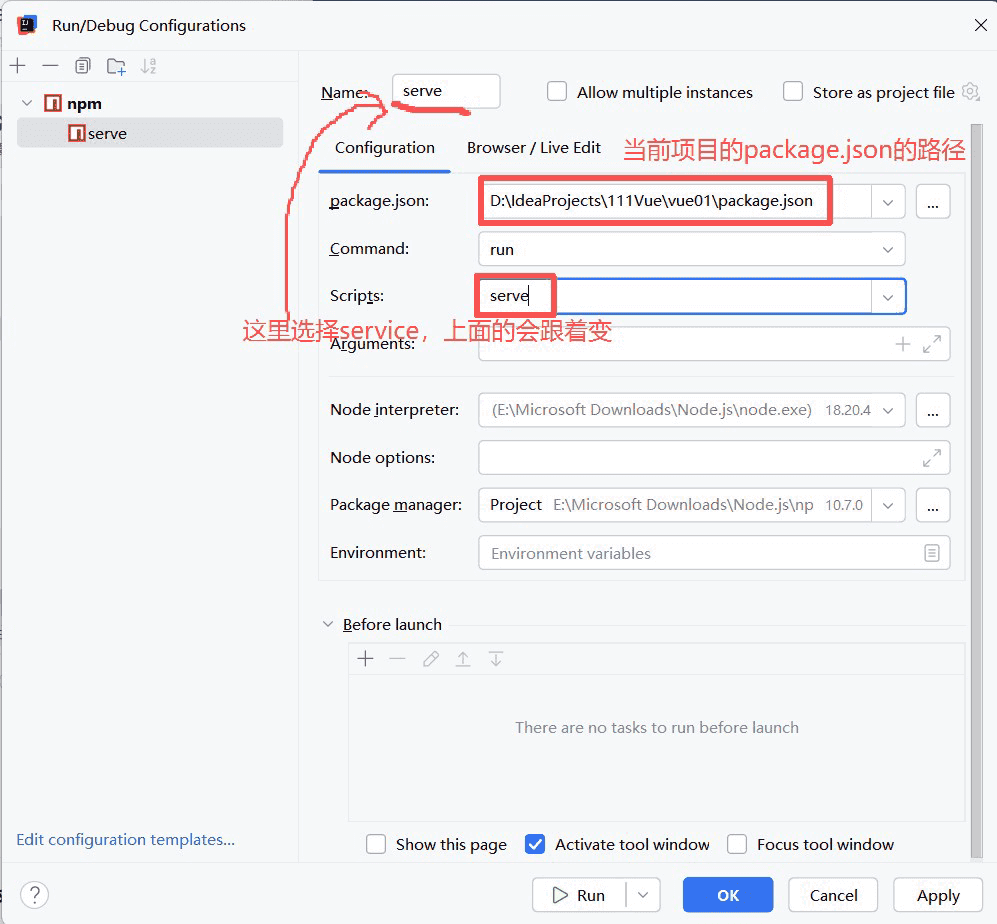 npm run serve 如果使用命令运行这个目录时需要执行的命令。在 IDEA 中有可视化操作,直接和 JAVA 项目一样点击