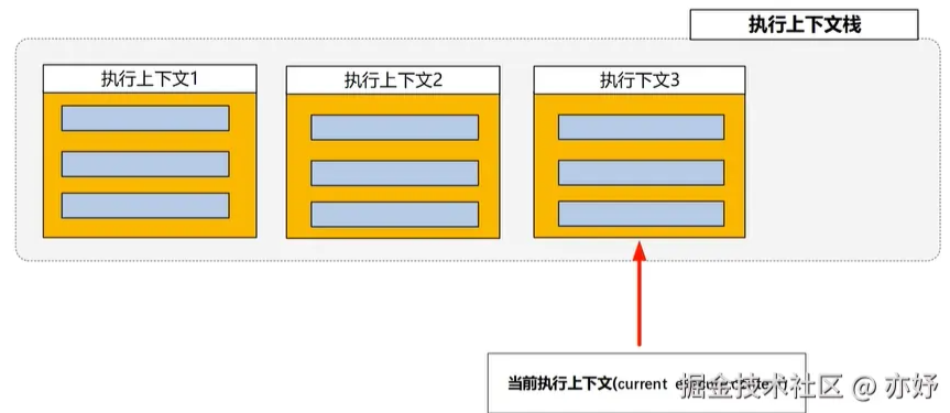 现在了解了执行上下文,但是js代码在执行过程中怎么去找到不同的执行上下文呢?那么就需要一个存放这些不同执行上下文的地方 —— 执行栈。执行栈,顾名思义是一个栈的数据结构,有先入后出的特点。执行栈栈顶的执行上下文就是当前的执行上下文