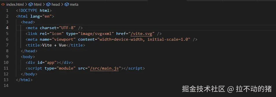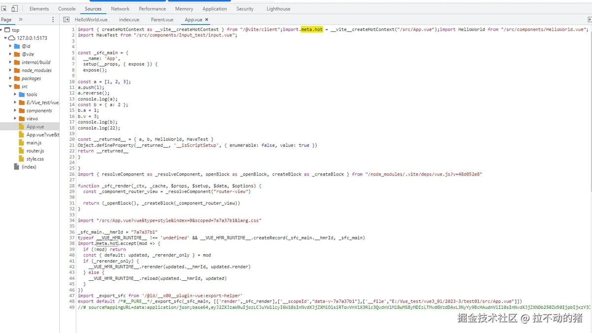 Vite对main.js进行以下处理:// 原始main.js import { createApp } from 'vue' import App from './App.vue' createApp(App).mount('#app')将