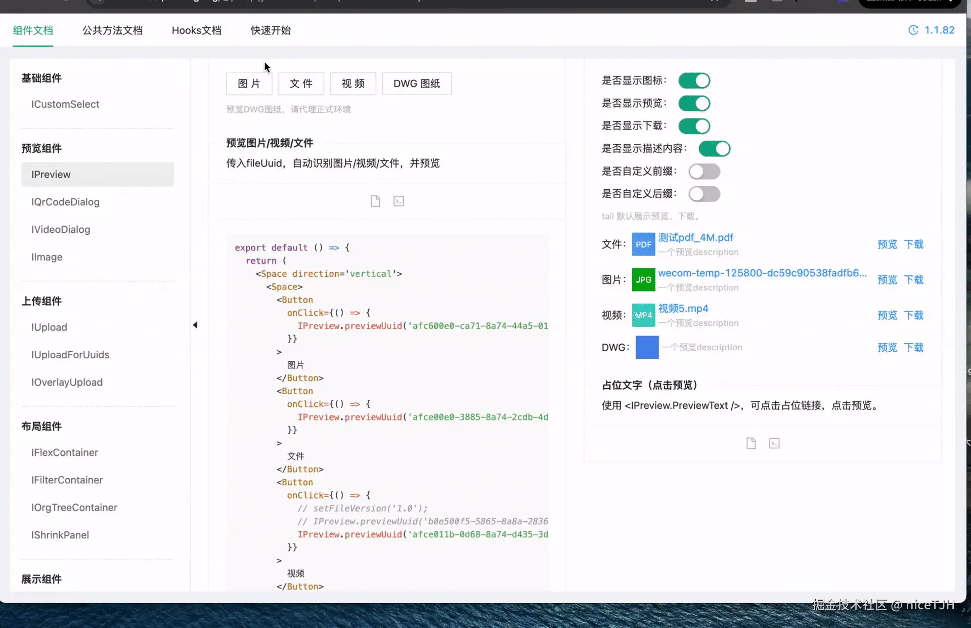 一行代码实现预览 是我在公司内搭建的前端组件库中的一个功能。目的是解决预览方式不统一、预览不同类型资源困难、预览实现代码混乱的问题。这个功能从提出到落地应用,极大提高了我的开发效率(更多摸鱼时间)!