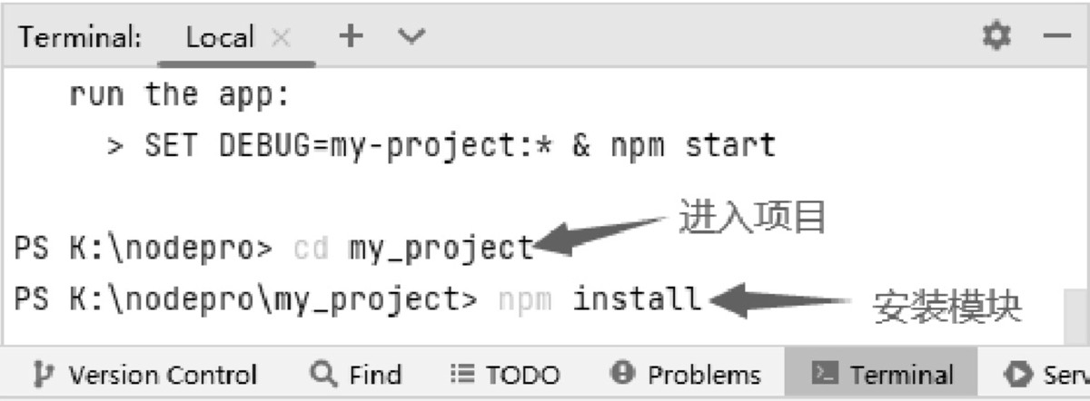 express模块是第三方模块,使用之前,首先需要使用npm命令进行下载和安装,命令如下: