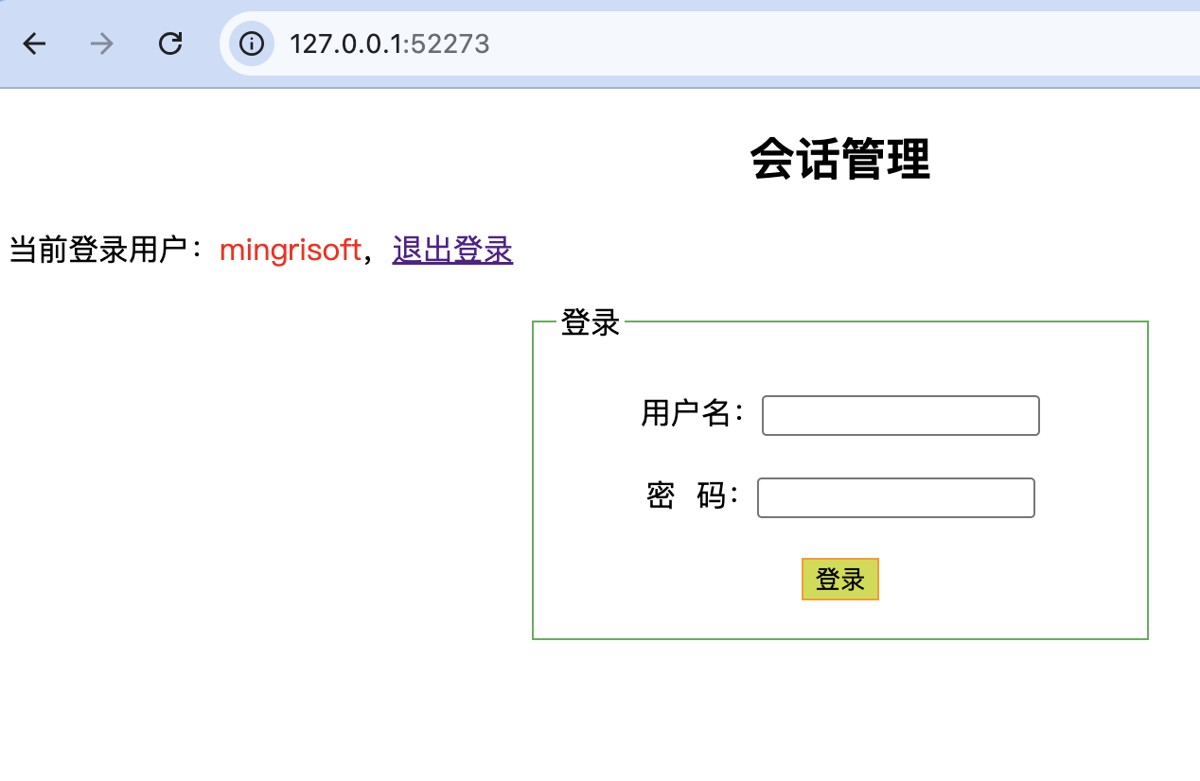 当前登录用户:<span style="color:red"><%= name %></span>,<a href="/logout" rel="external nofollow" id="logout">退出登录</a>