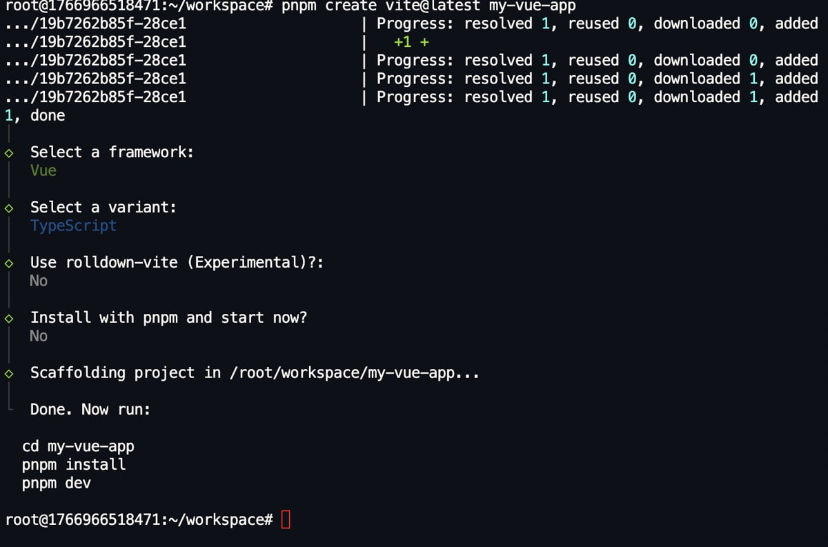 # 创建一个新的 Vue 3 项目 pnpm create vite@latest my-vue-app