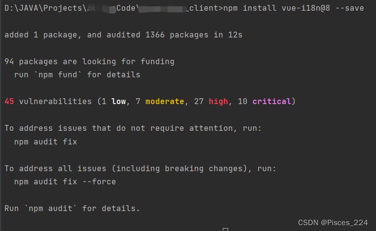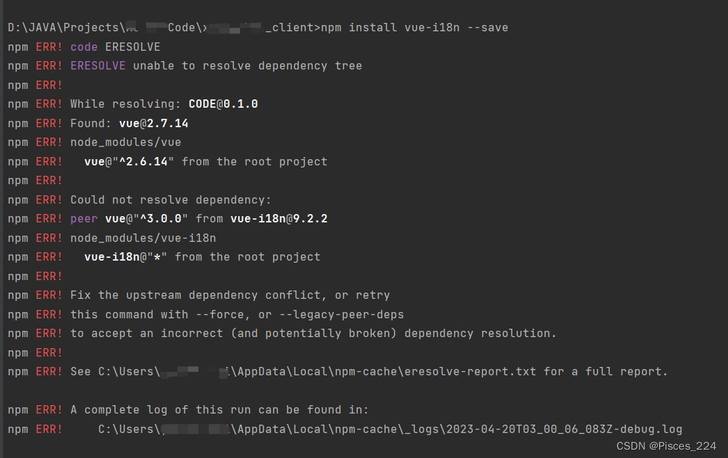 报错信息里写了,人家这个版本要求是vue3,所以我们需要安装适合vue2版本的vue-i18n 依赖包。