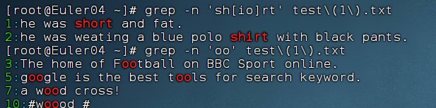 | | | 或 匹配(需在扩展正则中使用),如 `cat dog |