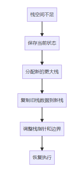 | 动态扩容 | 栈空间不足时自动增长 | 支持深度调用,避免栈溢出 |