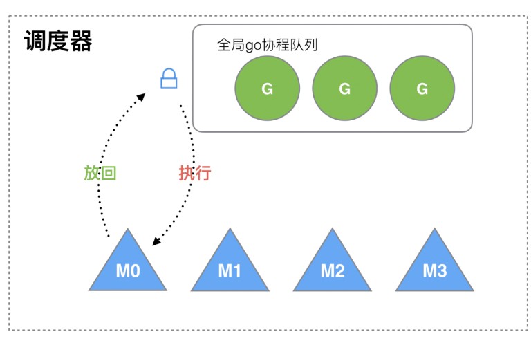 M想要执行、放回G都必须访问全局的G队列,并且M有多个,即多线程访问同一资源需要加锁保证互斥/同步