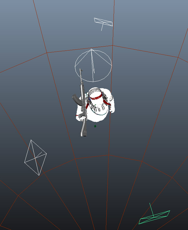 整支枪都是在玛雅中制作的。尽管ZBrush软件中有一些很好的Hard Surface工具,但是我还是觉得用玛雅创建硬表面元素更容易、更快。在把清晰度适中的部落人放到Mental Ray中做渲染之前,我转换了手臂的角度,以便抓住枪。对我来说建模的过程经常是很快的,特别是如果能花时间找到一些很好的参考图片。