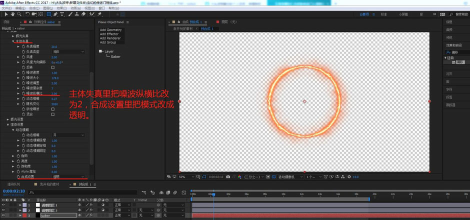 6、主体失真里把噪波纵横比改为2,合成设置里把模式改成透明