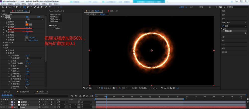 7、把辉光强度加到50%,辉光扩散加到0.1