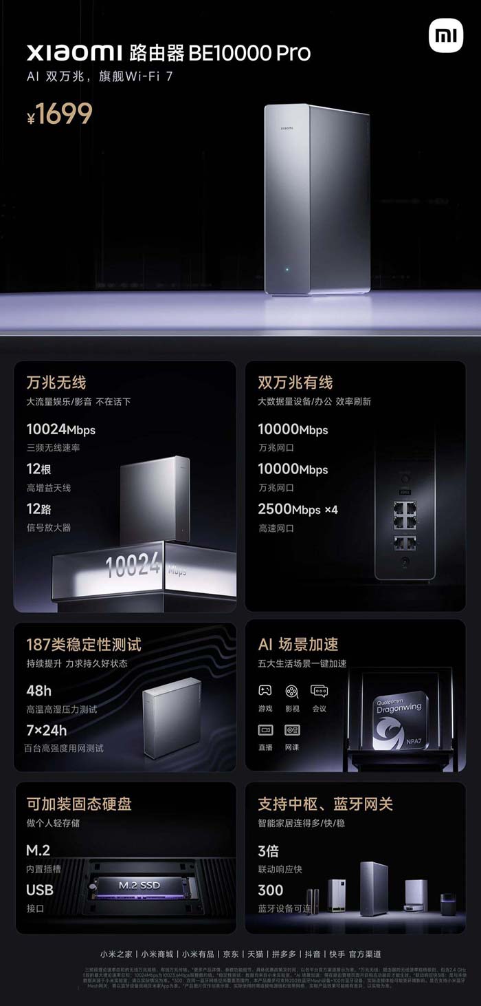 AI双万兆+个人轻存储! 小米路由器BE10000 Pro售价1699元