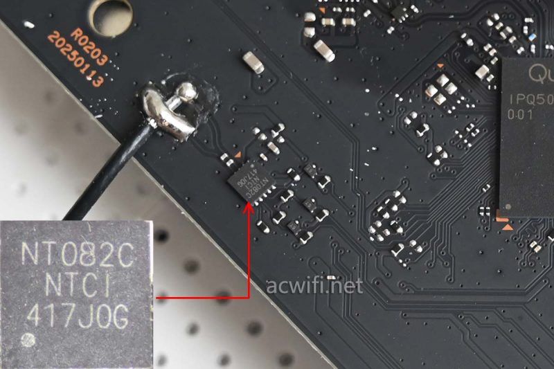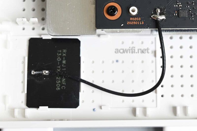 它相比小米AX3000E,多了独立的2.4G FEM芯片和多了NFC芯片。