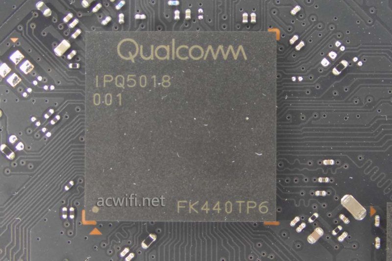 这款小米AX3000T的CPU是高通的IPQ5018,双核1GHz,集成了2.4G无线,支持2x2MIMO的802.11ax,在40MHz频宽和1024QAM下,最高无线速率574Mbps。