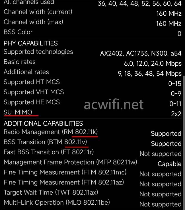 无线方面默认支持802.11k和802.11v,默认不支持MU-MIMO,也没找到系统开启MU-MIMO的地方,默认支持波束成形。