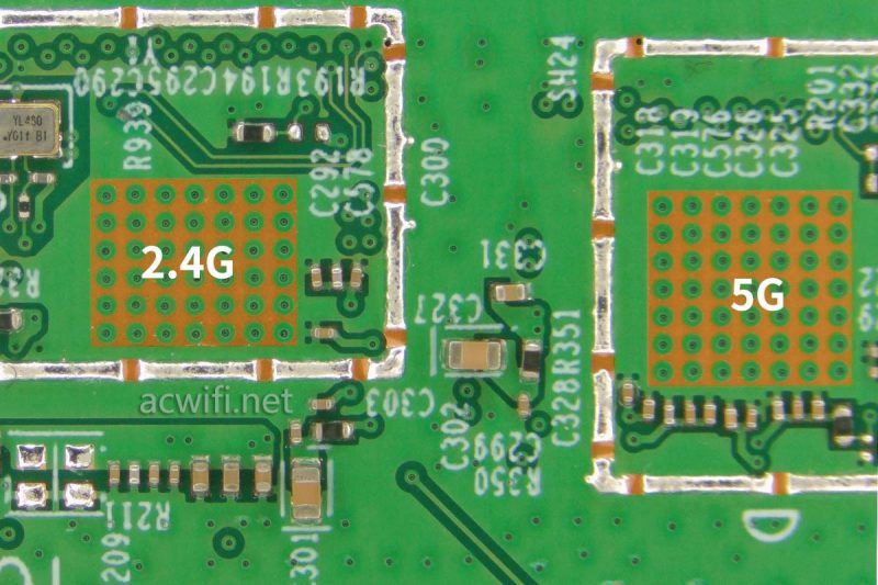 FEM芯片也在这背面,2.4G用了内置的,5G FEM用了外置独立的KCT8577SN。这颗FEM芯片里面内置了两个ANT,因此外围电路不需要用到切换开关。以满足5G的“2T3R”需求。