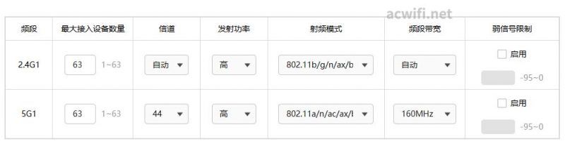 在AC里面查看, 发现单频带机量最高63台,家里有200个灯的朋友就要安装多几台AP了。
