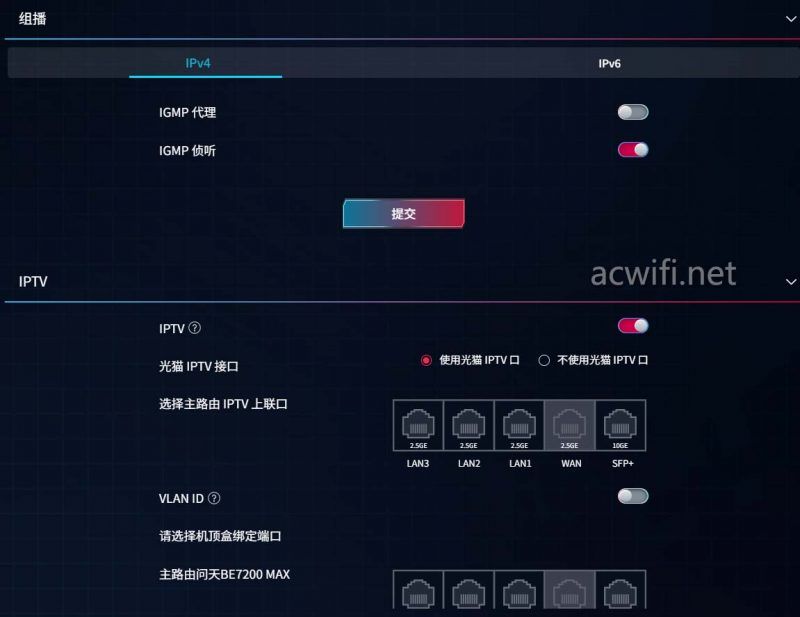 组播功能和IPTV功能。IPTV可以让无线MESH组网的副路由接电视,也就是说电视盒子旁边不一定要有网线。