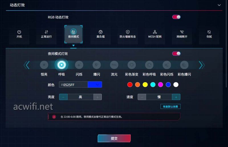 灯效控制功能。可以单独控制不同状态下的灯效: