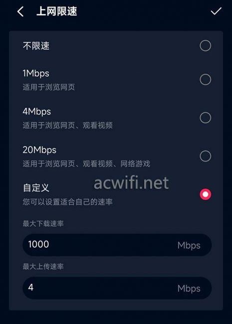 直接对电视机设置“上限网速”,把上行流量限制在个位就即可。由于中兴的CPU支持硬件转发,开了限速也不会影响包转发率。宽带的上限带宽是非常有限的,比如50Mbps上行,如果上行跑满了,会导致整个网络都变得卡卡的(有好多数据包需要等待对端回应呀)。