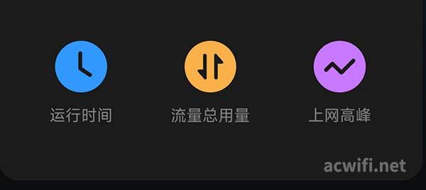 有“运行调报”功能,可以查看流量总用量和上网高峰, 方便排查问题。