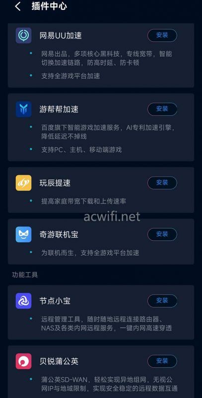 插件中心里面有四种游戏加速平台:网易UU加速、游帮帮加速、玩辰提速、奇游联机宝: