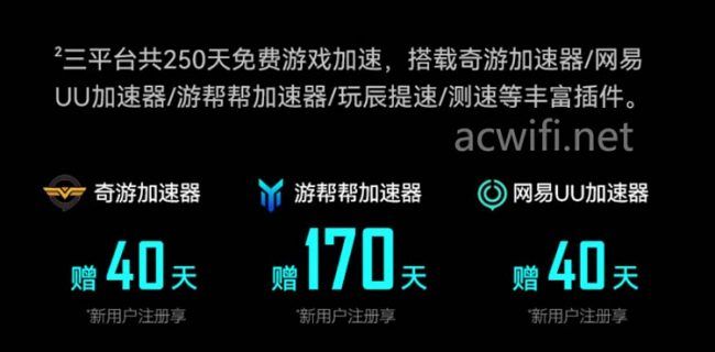 三种平台都是新用户注册的话,一共有250天免费游戏加速服务。