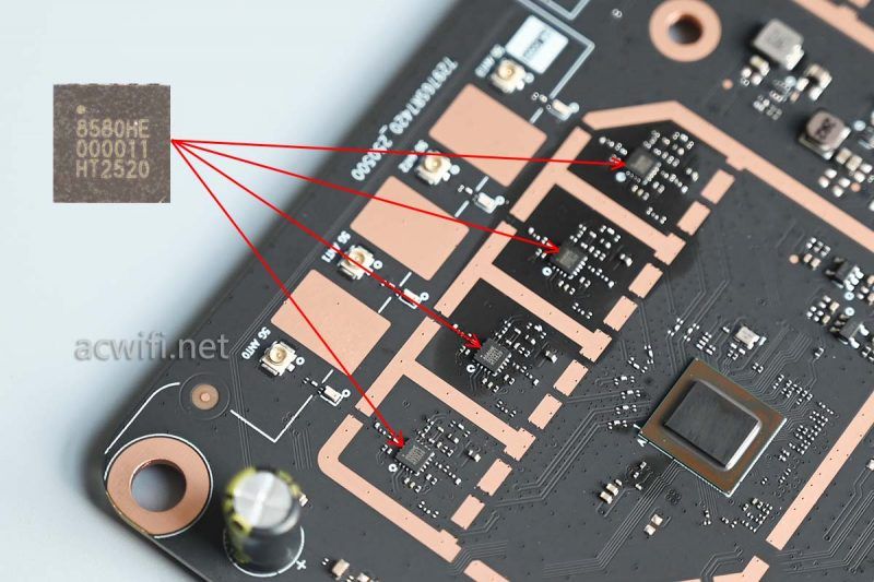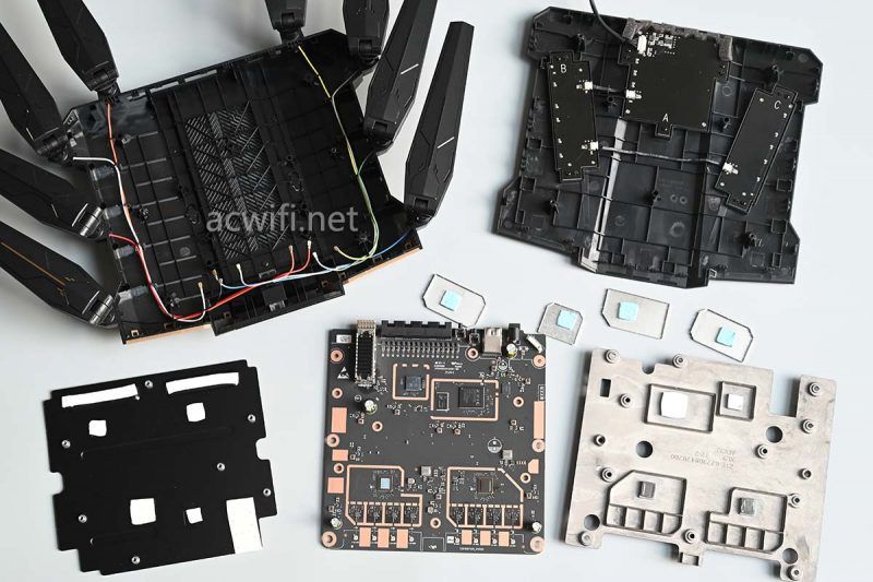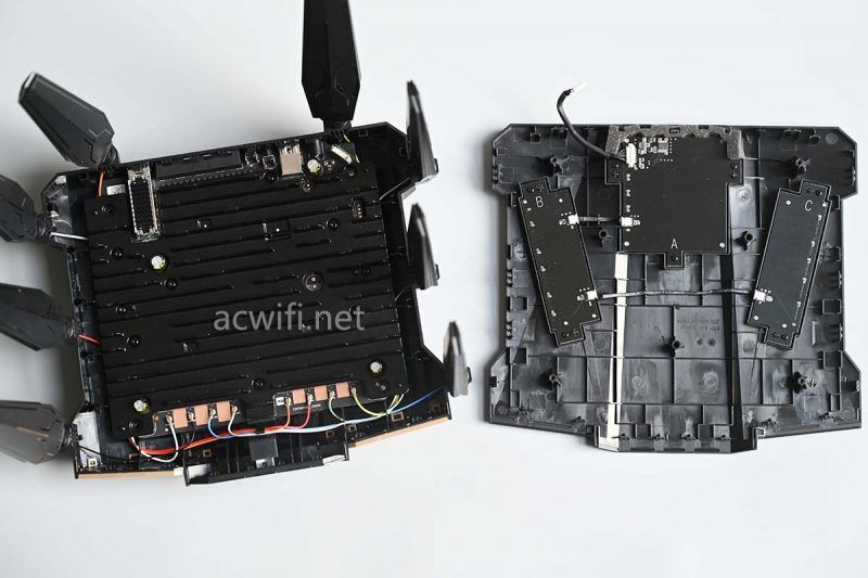 一共外置了8根天线,双频2.4G和5G的天线布局如下: