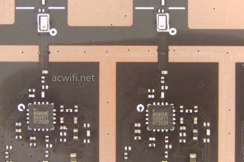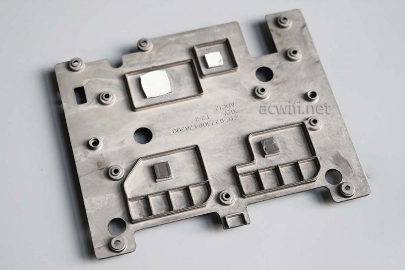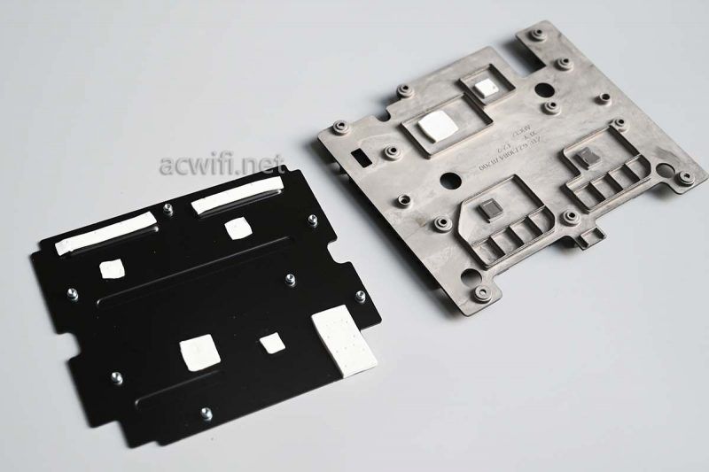 均热铝板也有几片导热硅脂垫片,比如2.4G和5G的FEM芯片底部位置也有放置。