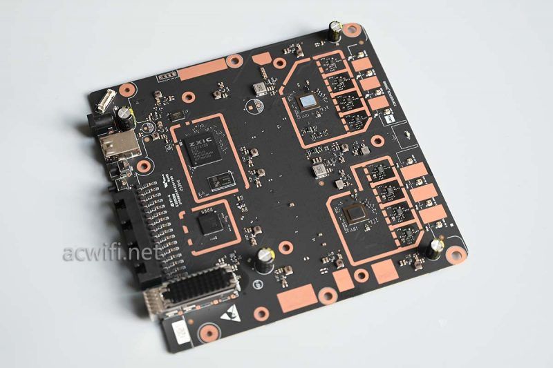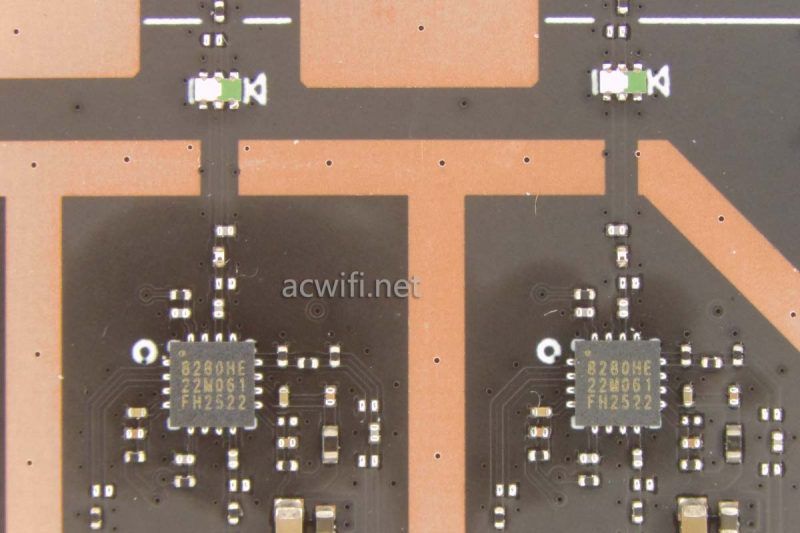 2.4G和5G无线芯片型号都是高通的QCN6224,它可以工作在2.4G频段或5G频段,支持4x4MIMO和4096-QAM,2.4G最高速率1376Mbps,5G最高速率为5764Mbps,2.4G和5G的无线带机量均是128台。