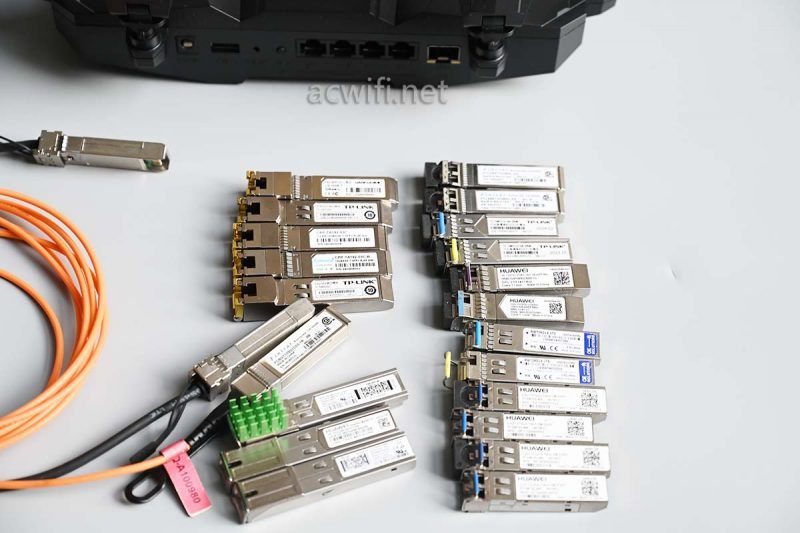 电口模块方面,TP的SM410U和SM510U也没问题,10G电口模块还有CPP-TA192-03C、CPP-TA192-03C-B、联果LG-10GE-T也没问题。10G光口模块方面,华10G 单模、多模、双纤、单纤都能识,还有2.5G光模块也能识别。光纤跳线方面,AOC和DAC也可以识别。