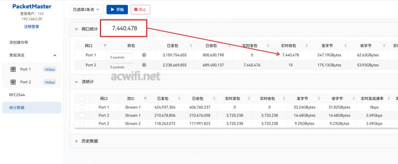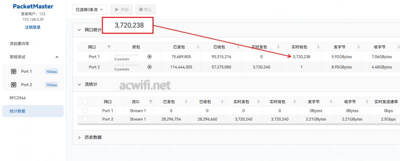 用PacketMaster工具测试64字节包转发率,实测中兴问天BE7200MAX的64子节包转发率为3.72Mpps,可以跑满2.5G端口。