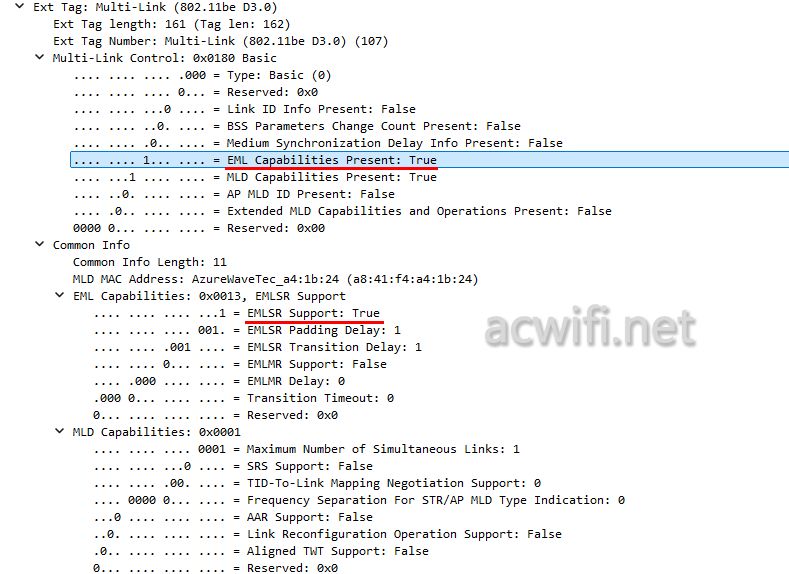 中兴问天BE7200MAX还支持EMLSR,比如用MT7925无线网卡连接,抓包就能看见支持EMLSR: