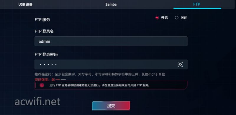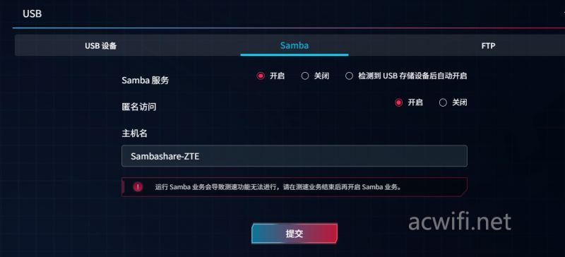 中兴问天BE7200MAX的USB3.0支持Samba共享和FAT共享。
