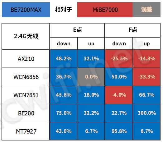 由于小米BE7000的2.4G不支持4096-QAM,无线速率会低了一点点。