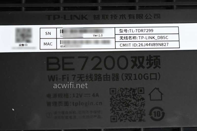 产品标签信息:型号TL-7DR7299,SN后面会有个硬件版本v1.0。