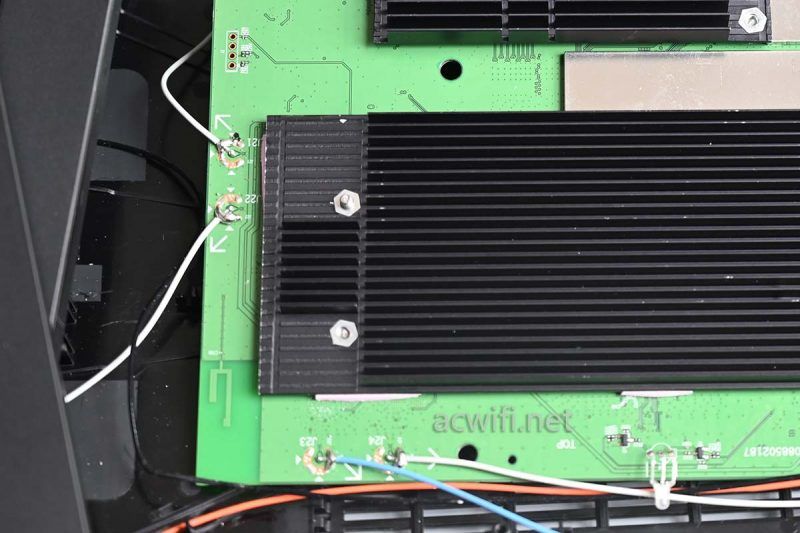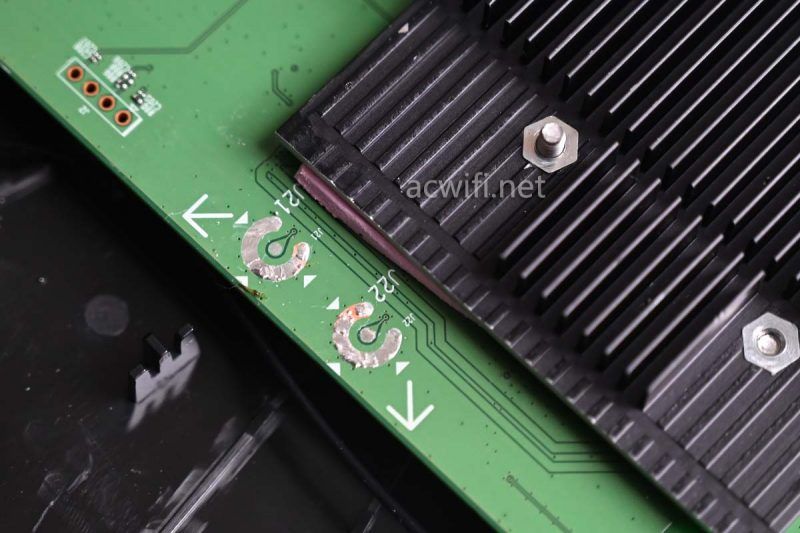 主板两侧的的射频馈线比较短,主板翻转不了。唯有”解开“某一侧的馈线才可以翻转主板背面。在2.4G和5G之间我通常会对2.4G进行动手。