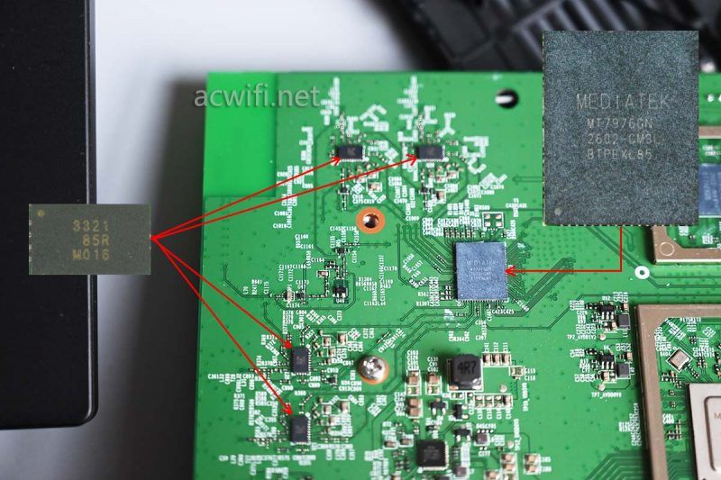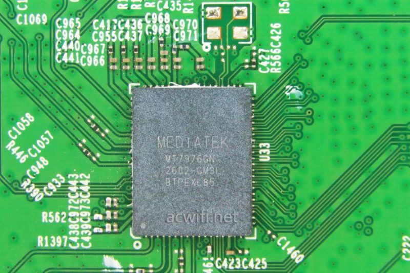 接着看2.4G RF芯片,型号是MT7976GN,因为带了G,所以没有集成FEM,要用外置的FEM。2.4G射频支持4T4R。