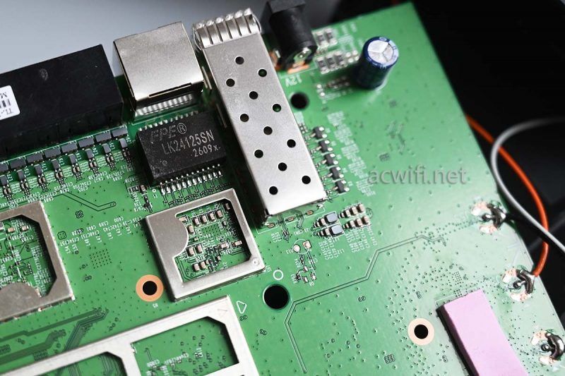 然后是2.5G交换芯片,是螃蟹的RTL8372N,它有2个10G USXGMII,一个用来接10GSFP+,另一个用来接CPU。RTL8372N内有四个2.5G PHY。