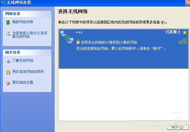 配置完成后搜索无线网络,可以搜索到刚配置的网络123(这里改成了czj!)