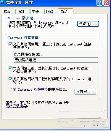 再右击A机宽带连接的属性!选“高级”标签,按下图配置!