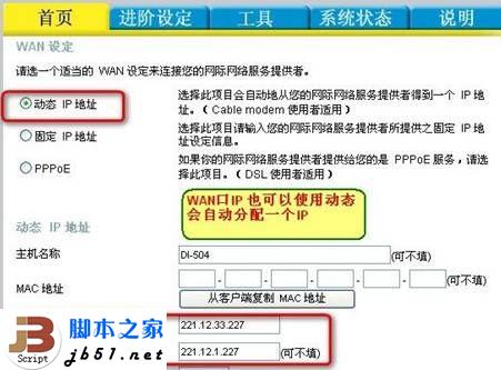 二、对路由器B的WAN口进行了设置,使用固定静态IP地址,设置好后即可上网,IP地址:192.168.0.222,路由器A 使用192.168.0.2-192.168.0.254之间没有被使用的IP地址,网关:192.168.0.1,DNS信息手动设置。
