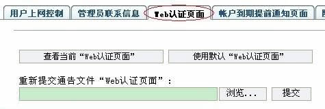 二、认证页面 1、点击Web认证页面选项,可以查看、更改Web认证登陆的页面,若要更换此登陆页面,只需将编辑好的文件导入到路由器中即可,文件必须为.htm格式的,点击使用默认Web认证页面,可将之前导入的页面恢复到默认出厂页面。