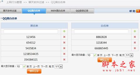 如上图分别添加QQ黑名单与白名单。MSN白黑名单的设置方法与QQ黑白名单设置方法一致。