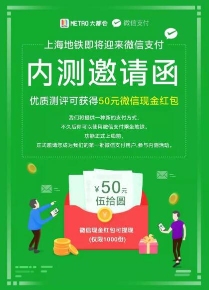 在移动支付领域,支付宝、微信一直是你追我赶,现在他俩纷纷向交通出行方面拓展。5月3日下午,上海地铁宣布其交通移动支付应用Metro大都会即将迎来微信支付,并开始内测,优质测评可获得50元微信现金红包奖励
