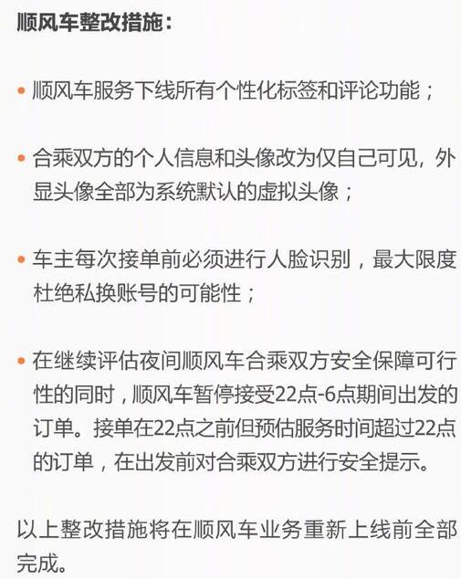 1、滴滴顺风车服务下线所有个性化标签和评论功能;