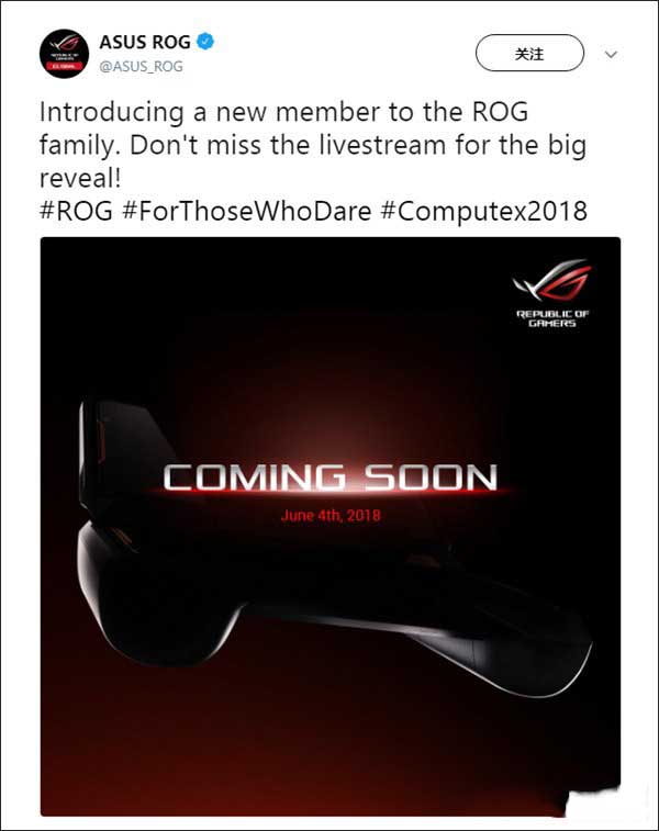 大家都知道,除了每年必备的PC新品外,近来颇受游戏玩家青睐的游戏手机也是今年台北国际电脑展(COMPUTEX 2018)上的一大看点!而据最新消息显示,华硕官方日前公开宣布将在COMPUTEX 2018上推出ROG游戏手机。