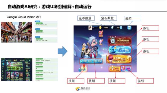 基于游戏领域,腾讯WeTest尝试通过OCR技术与AI结合的形式,进行有效场景探索与选择操作。通过在较为复杂的游戏场景中对游戏UI语义与图标分门别类进行理解识别、合并识别结果,来获得当前UI图像对应的可操作元素的名称及其位置,进而更加真实的探索场景
