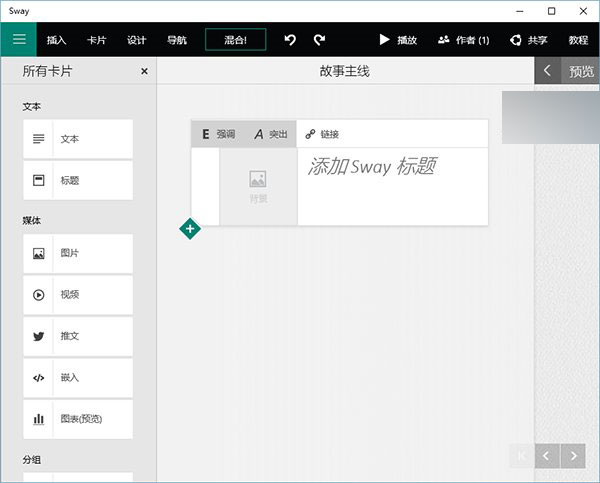 Win10版Office Sway具有以下功能: